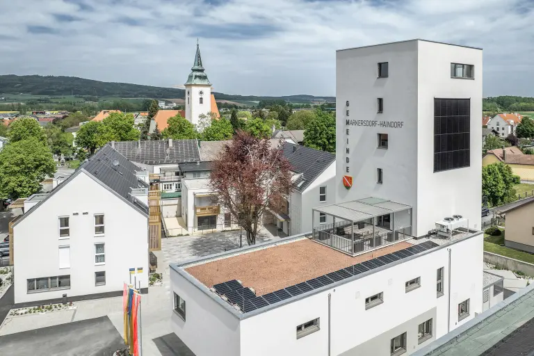 Das neue Empfangs- und Bürogebäude in der Sto-Zentrale in Weizen wurde als Nullenergiehaus im Passivhausstandard gebaut. Einen Teil der Energieerzeugung übernehmen die auf dem Dach und an der Süd-Ost-Fassade installierten Photovoltaikmodule. An der Fassade wurden das Photovoltaik Fassadensystem StoVentec Photovoltaics Inlay montiert. Kombiniert mit weiteren vorgehängten hinterlüfteten Fassadensystemen von Sto (StoVentec R und StoVentec Glass). Die Messung der tatsächlich in den Jahren 2018 und 2019 am Sto-Gebäude erzielten Energieerträge zeigt, dass diese mit den vorab errechneten Stromerträgen übereinstimmen.