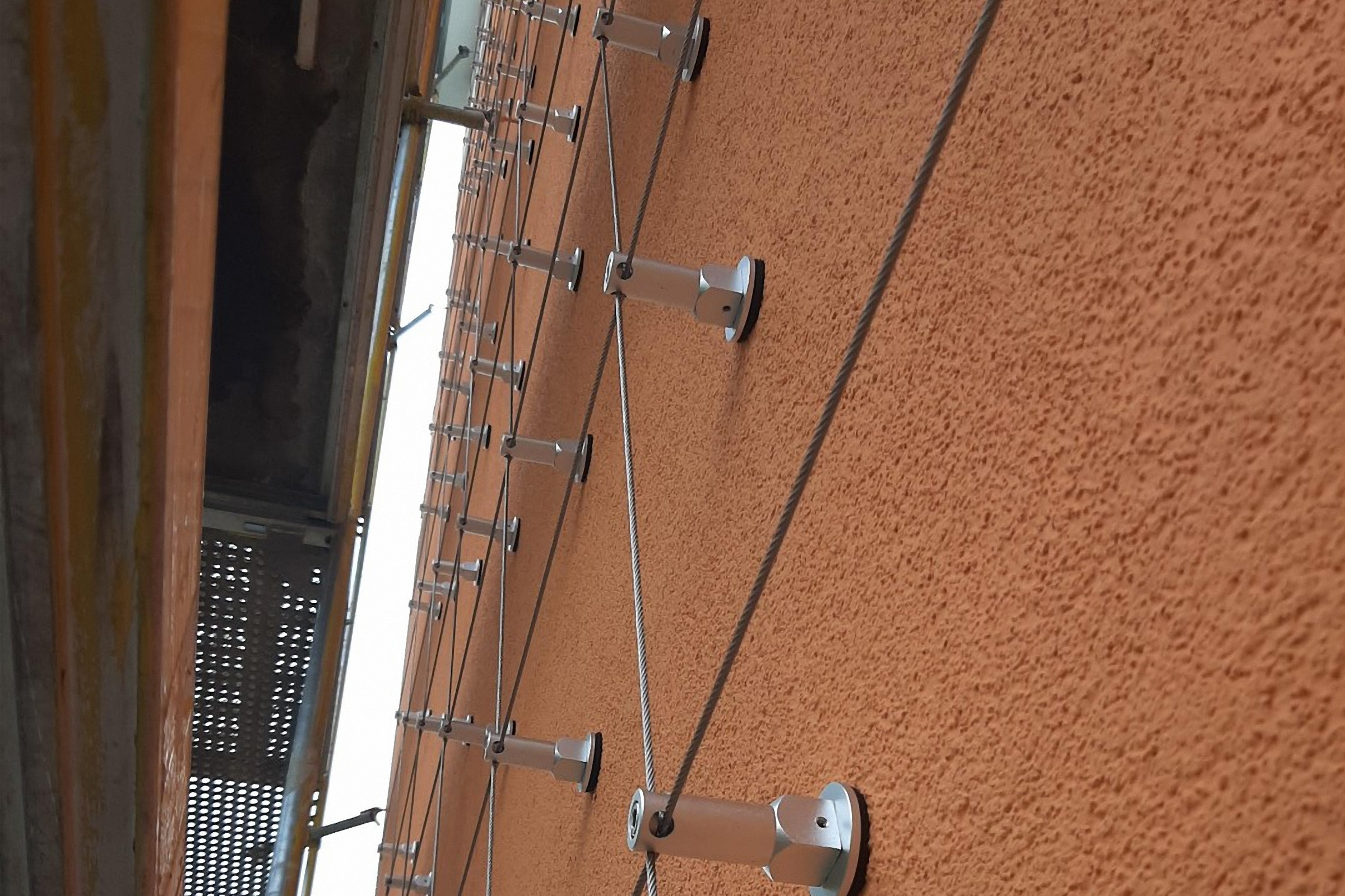 Das witterungs- und UV-beständige Montagesystem wird direkt auf der Baustelle abgelängt und bietet durch verschiedene Seilführungen und Rastergeometrien Gestaltungsfreiheit. In Beton oder Mauerwerk lässt sich das System der Sto SE & Co. KGaA bei Dämmstoffdicken bis zu 300 Millimetern mit dem Injektionsmörtel Multifix USF befestigen, spezielle Adapter halten das Ranksystem sicher.